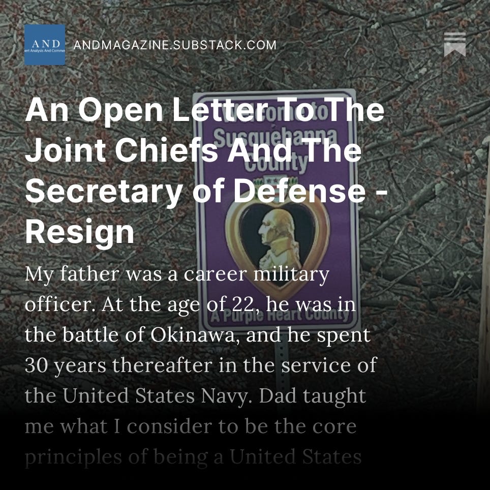 An Open Letter To The Joint Chiefs And The Secretary of Defense - Resign