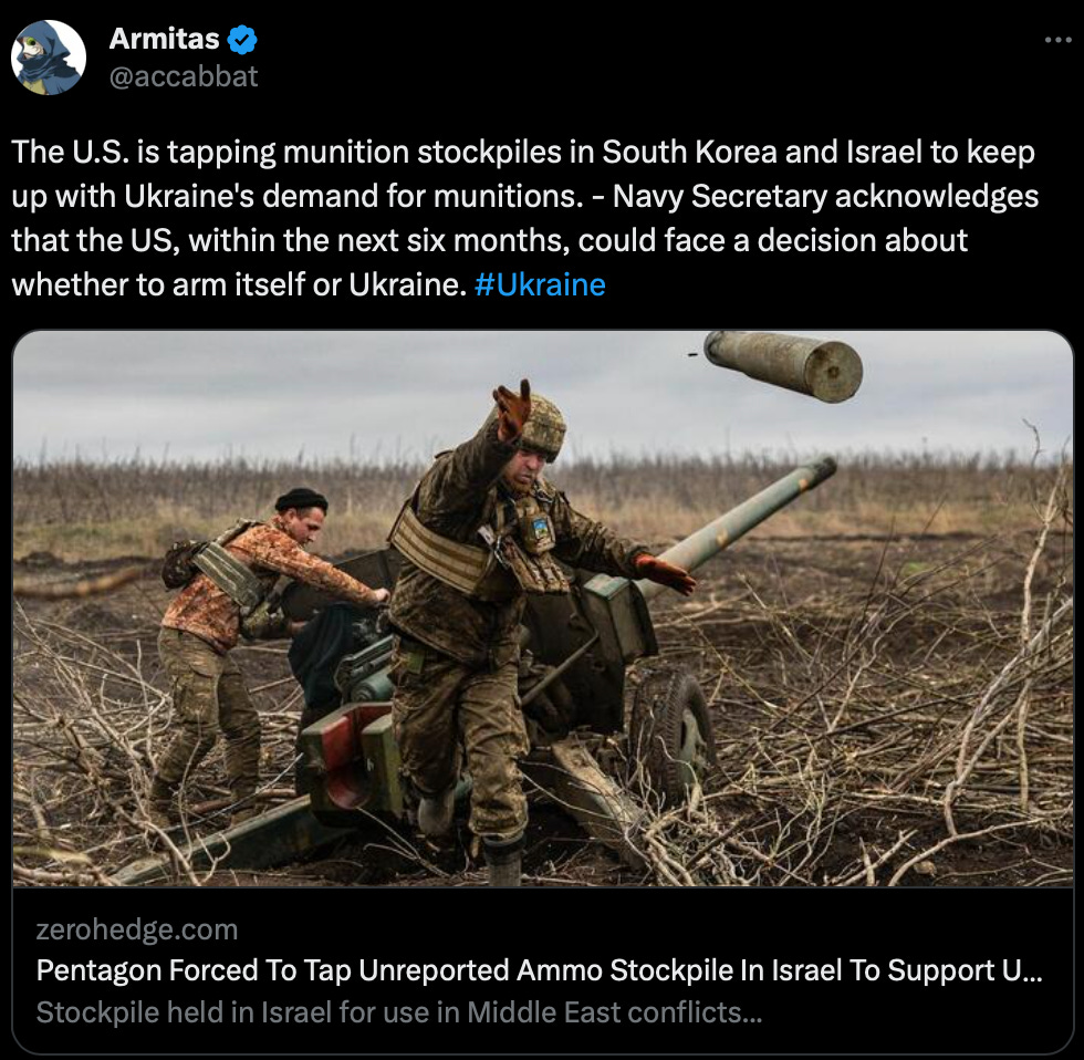 If you think these things are rolling off production lines somewhere and heading for Ukraine, you do not understand at all what is happening. Joe is pulling these things out of our own war stocks. Prepositioned stockpiles of weapons around the world, which are intended to be used by our own troops in the event of war, are being stripped. The cupboard is increasingly bare.