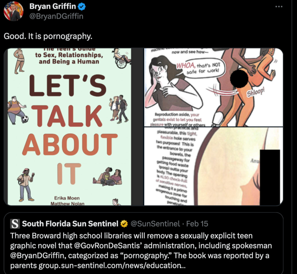 “As long as we agree to the terms set by a Christo-fascist right, organized over decades and currently mobilized to attack schools and libraries and the people who work in them, we’ll be stuck defending the indefensible, arguing for the right to read on very narrow terms.“