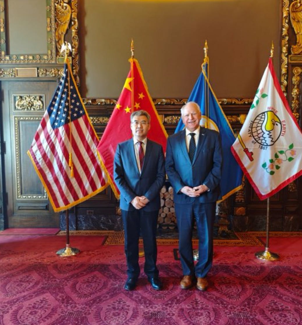 As Governor, Walz has been an honored guest speaker at multiple CCP-backed influence operation events inside the United States. These include events staged by the Chinese People’s Association for Friendship with Foreign Countries (CPAFFC). The CPAFFC is part of the United Front which conducts influence operations inside the United States on behalf of the CCP.