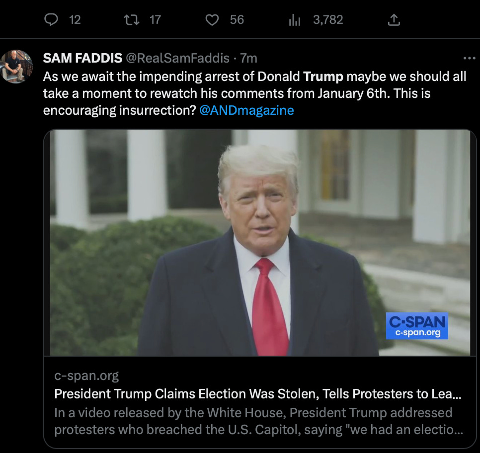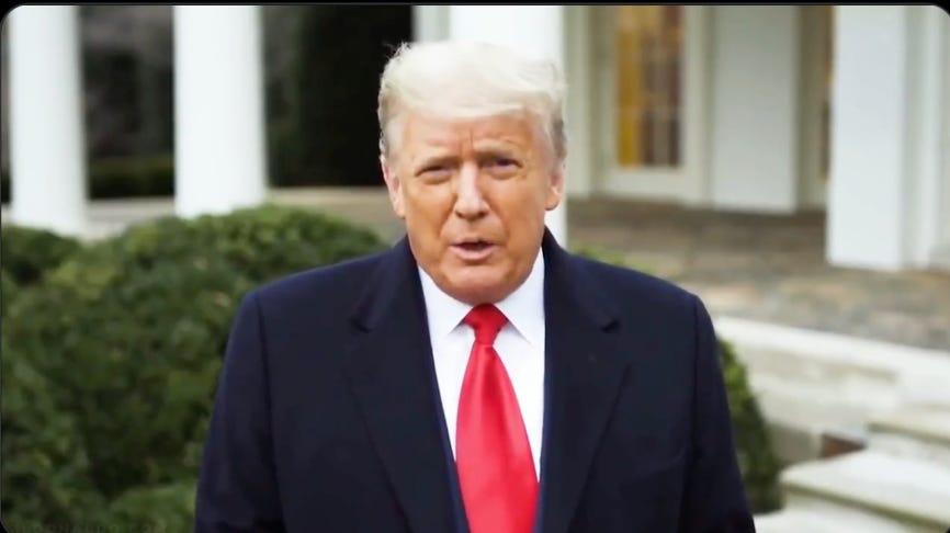 Video of Trump on 6 January telling rally attendees and protestors to go home and be peaceful…