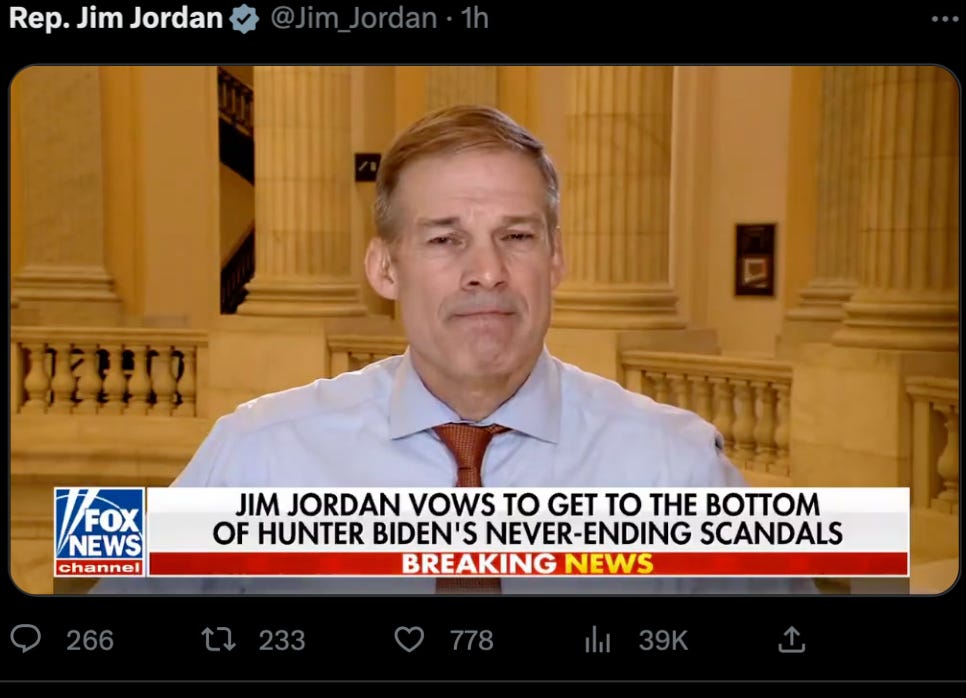 Jordan also vows to get to the bottom of the Hunter Biden scandals.